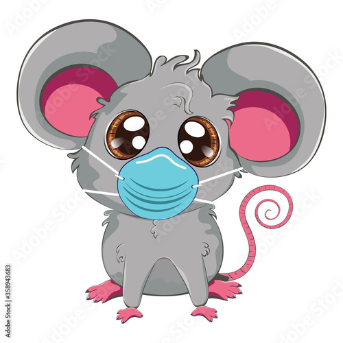 © AnnaPa, Obraz premium Kawaii grey mouse in face mask