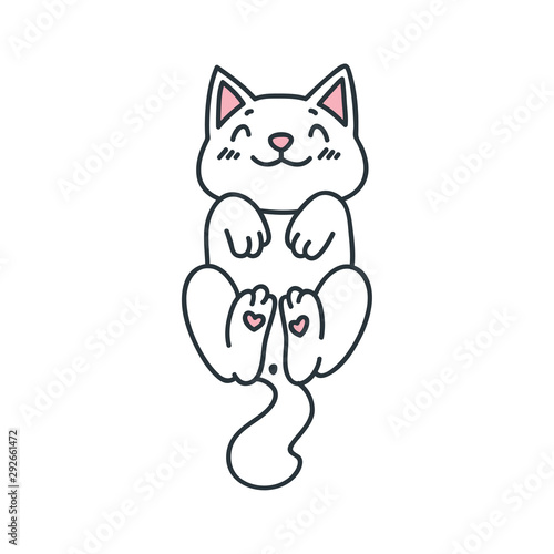 © slybrowney, Obraz premium Kawaii illustration of a happy kitten isoladed on white background. Vector 8 EPS.