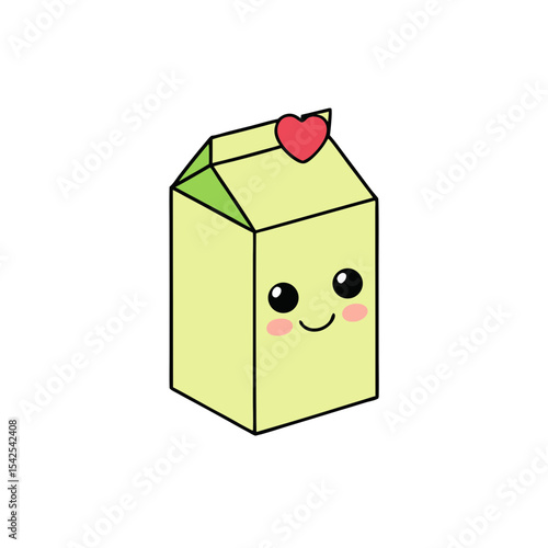© Cartoon vect, Obraz premium Kawaii Milk Carton with Heart Shaped Eyes
