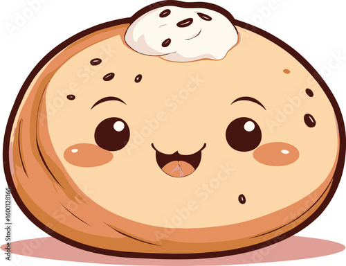 © Diyal, Obraz premium Kawaii Pastry Cartoon An Endearing Illustration Of A Smiling Pastry With Cream Topping Designed In A Cute And Playful Style Perfect For Adding Charm To Childrens Books Or Food Related Designs