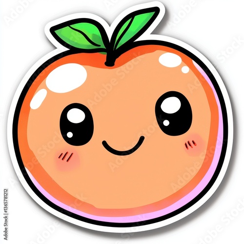 © Mai, Obraz premium Kawaii Peach Sticker Happy Fruit Character Illustration
