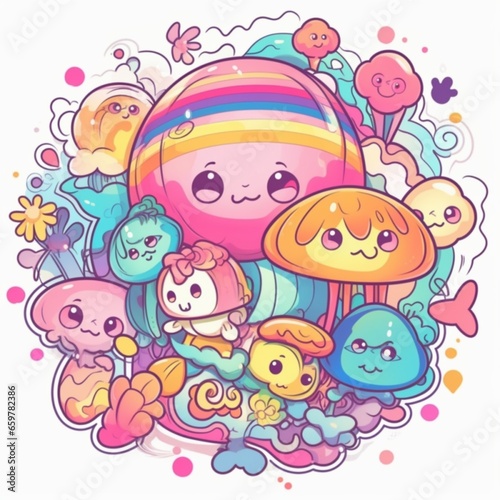 Naklejka premium Kawaii Psychedelic Wonderland