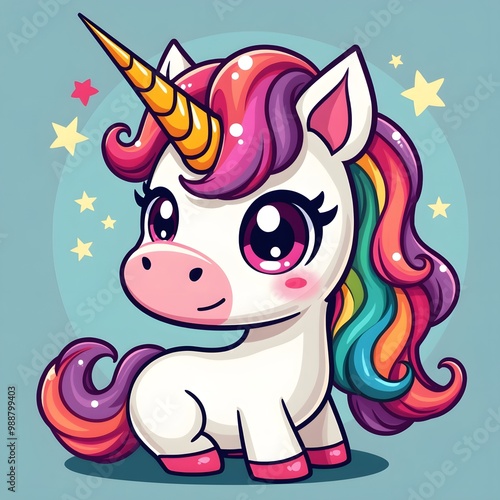 © Eva13186707, Naklejka premium Kawaii Rainbow Unicorn Chibi Vector Illustration