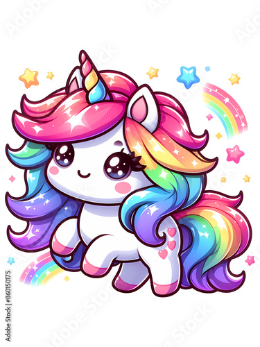 Naklejka premium Kawaii Rainbow Unicorn PNG Artwork - Cute and Whimsical Unicorn Sublimation...