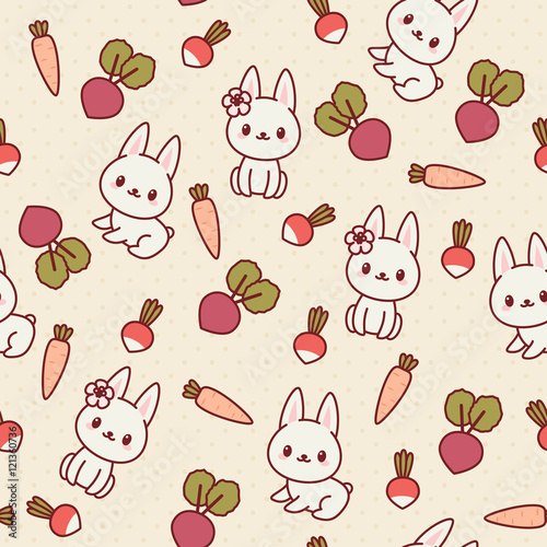 Fototapeta premium Kawaii seamless pattern with bunnies and vegetables