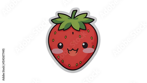 © Illustra, Obraz premium Kawaii Strawberry with Cute Face Isolated on White Background PNG