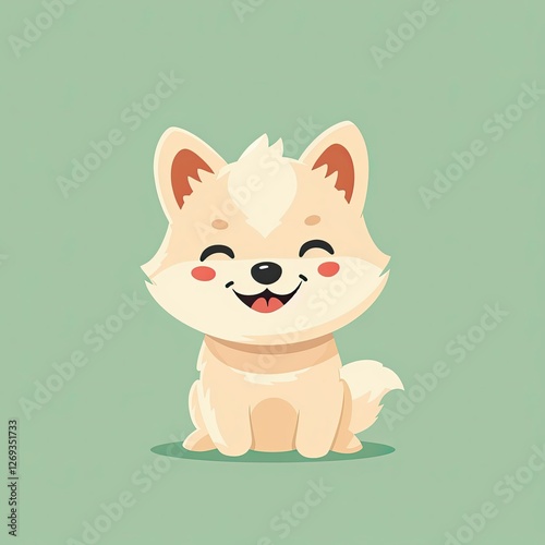 Fototapeta premium Kawaii-style happy dog illustration, showcasing a playful expression and lovable features that make hearts melt.