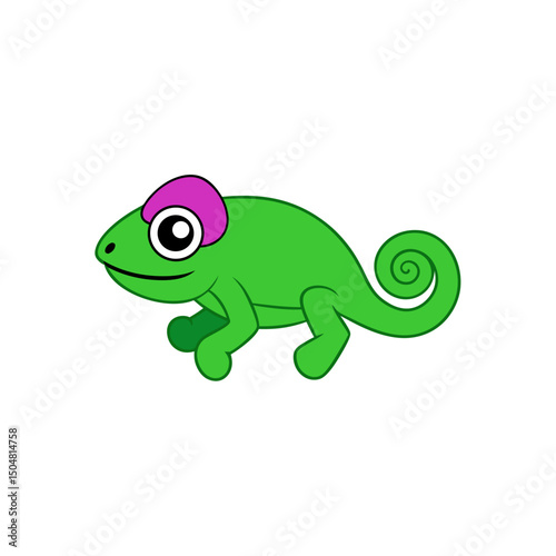 Fototapeta premium Kawaii Style Jumping Cute Chameleon Side View Vector Graphic