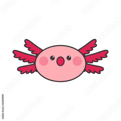 © Polinmr, Fototapeta premium Kawaii surprised axolotl sticker. Cute flat vector pink character isolated on white background, unhappy axolotl, amphibian head.