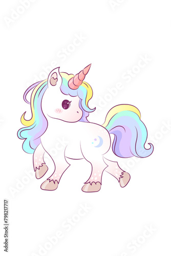© noufair, Naklejka premium Kawaii Unicorn Daydreams, Cute Unicorn Illustrations for All Projects