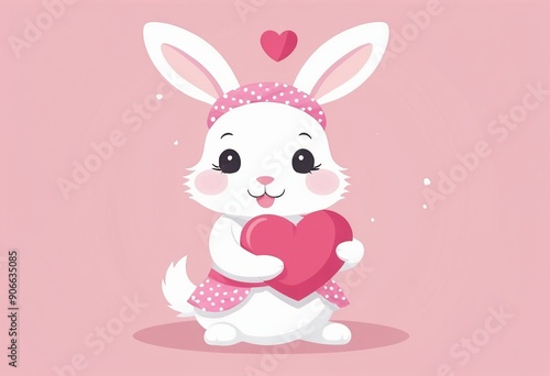 © Eliane, Obraz premium Kawaii White Rabbit Maid Illustration for Kids Room Decor