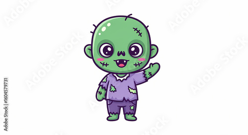© Isaque Taylor, Obraz premium Kawaii zombie icon – cute Halloween chibi illustration on white background