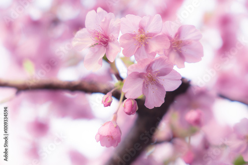 © Itsuki Momiji, Obraz premium 春に日本の東京で咲く満開の桜の花。河津桜(kawazu-zakura)