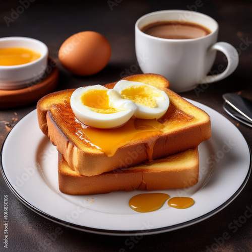 Fototapeta premium Kaya Toast with Butter and Soft Eggs
