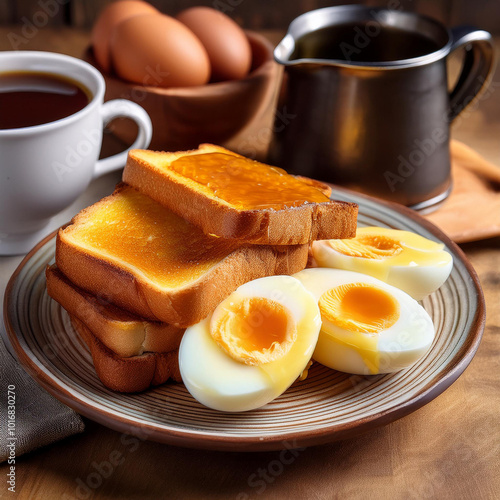 Fototapeta premium Kaya Toast with Butter and Soft Eggs