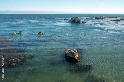 © Hanna Tor, Fototapeta premium Kayaking along rocky shore, Pismo Beach, California coastline