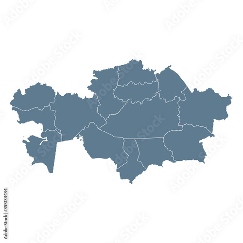 © Porcupen, Fototapeta premium Kazakhstan Map - Vector Solid Contour and State Regions