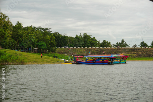 Fototapeta premium Kebumen, Central Java, Indonesia (12/30/2018) : Boat Tour in Sempor Dam