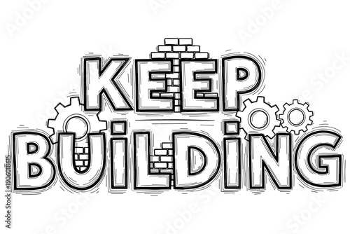 © supplement, Naklejka premium Keep building motivational typography with gears and bricks theme