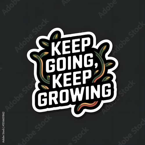 Obraz premium Keep Going, Keep Growing — plant growing through cracks in cement, with thick white sticker-style outline around the design, solid black background, high contrast, centered composition
