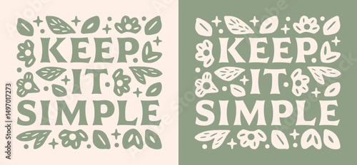Fototapeta premium Keep it simple slow life countryside country living lifestyle floral plants lover summer spring shirt design. Cute flowers sage green boho cottagecore aesthetic printable illustration poster print.