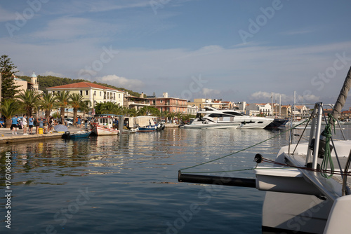 Fototapeta premium Kefalonia - Greece - August 15, 2025: Argostoli harbor,, Kefalonia, Greece.
