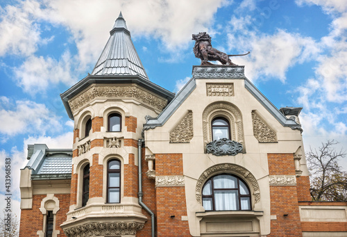 © yulenochekk, Obraz premium Kekusheva's house with a lion on the roof on Ostozhenka street in Moscow