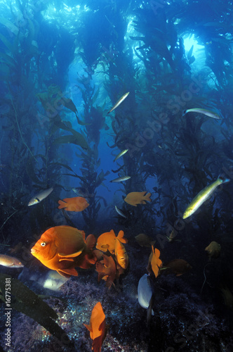Naklejka premium Kelp forest scene with garibaldis