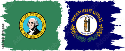 Fototapeta premium Kentucky and Washington states grunge brush flags connection, vector