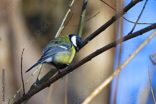 © 0diN, Fototapeta premium Kesse Kohlmeise in der Wintersonne