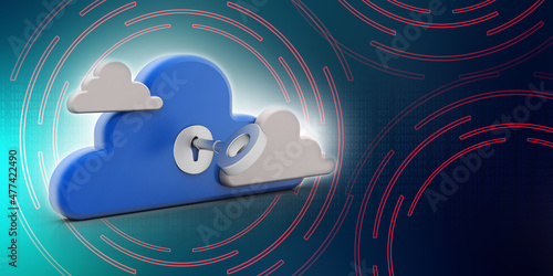 Obraz premium Key and lock on a cloud . 3D illustration
