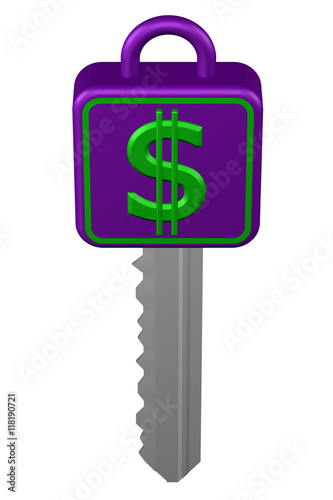 Obraz premium Key with sign dollar. 3D rendering.