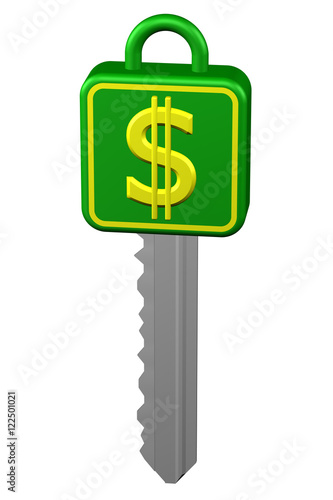 Obraz premium Key with sign dollar. 3D rendering.