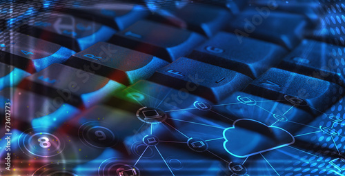 © ra2 studio, Fototapeta premium Keyboard with glowing cloud technology icons