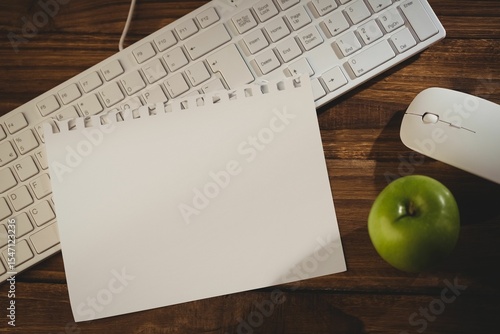 Fototapeta premium Keyboard with mouse and green apple on table