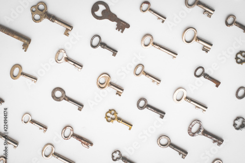 © hanohiki, Naklejka premium keys on white background - key pattern