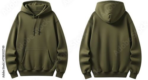 Naklejka premium Khaki green hoodie, front and back views, isolated for design.