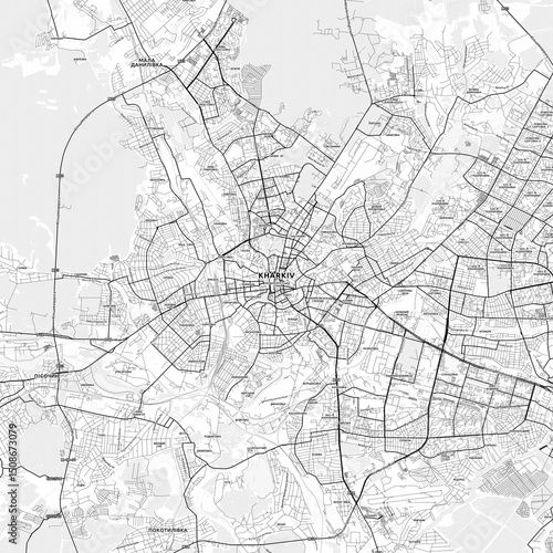 © Knut Hebstreit, Naklejka premium Kharkiv Area Map with Labels and Neighborhoods - One color, minimalistic design