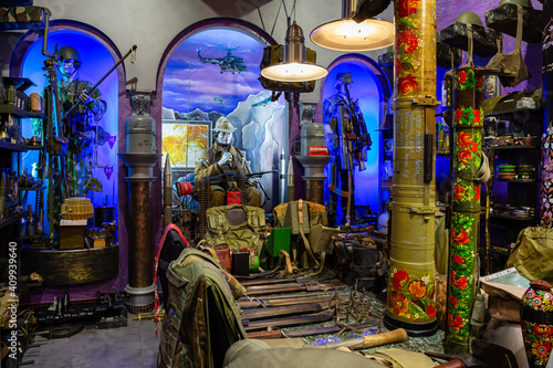 © Sergii, Fototapeta premium Khmelnytsky. Ukraine. January 26, 2021. Museum of the War in Afghanistan with samples of mines and bombs. Museum for Soldiers Internationalists.