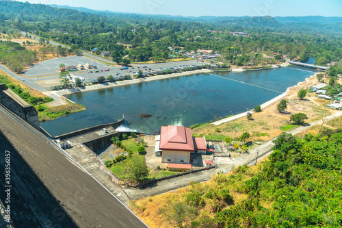 © Narong Niemhom, Fototapeta premium Khun Dan Dam is a new tourist attraction of Nakhon Nayok in which you can see the view of Khao Yai National Park .from the ridge of the dam and see the landscape of Nakhon Nayok from behind the dam.