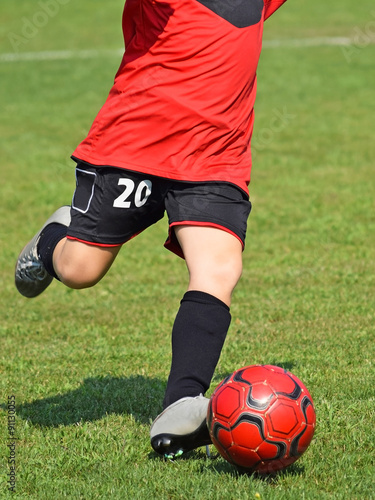© majorosl66, Fototapeta premium Kick off on a kid soccer match