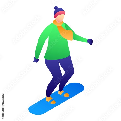 Fototapeta premium Kid at snowboard icon. Isometric of kid at snowboard vector icon for web...