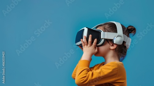 © Media Srock, Fototapeta premium kid enjoying virtual reality on solid background