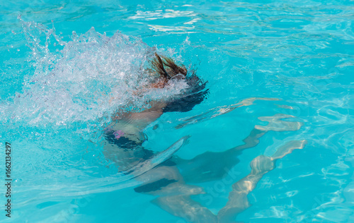 Fototapeta premium kid girl swimming in pool. selective focus.