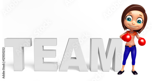 © visible3dscience, Naklejka premium kid girl with Team and Boxing gloves