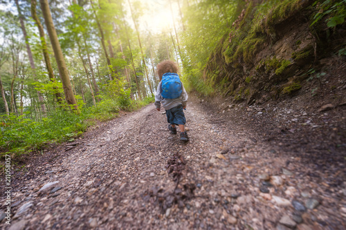 Obraz premium Kid hiking through forest