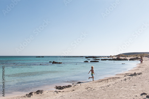© Jerome Bosger, Fototapeta premium Kid playing in the beach
