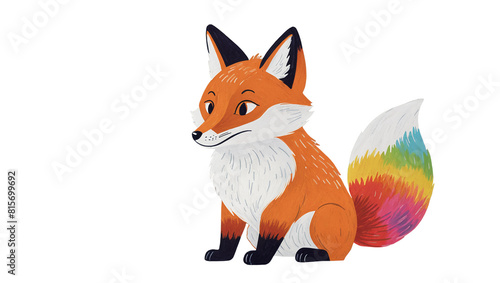 Obraz premium Kid's colorful fox illustration with rainbow tail