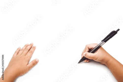 © Win Nondakowit, Fototapeta premium kid's hand writing on white