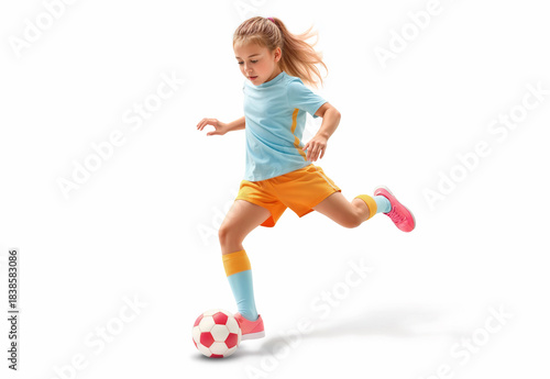 © Alexandr Bognat, Fototapeta premium Kid soccer player in colored uniform mockup, isolated, ai generated